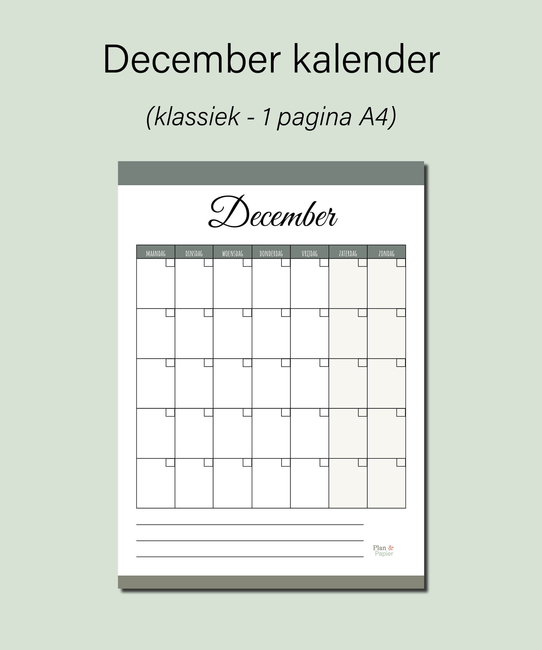 Breng rust en overzicht in de drukste maand van het jaar met deze klassieke december kalender zonder data. Dankzij het tijdloze ontwerp kun je zelf bepalen welk jaar of welke december je invult – ideaal voor thuis, op kantoor of in de keuken.