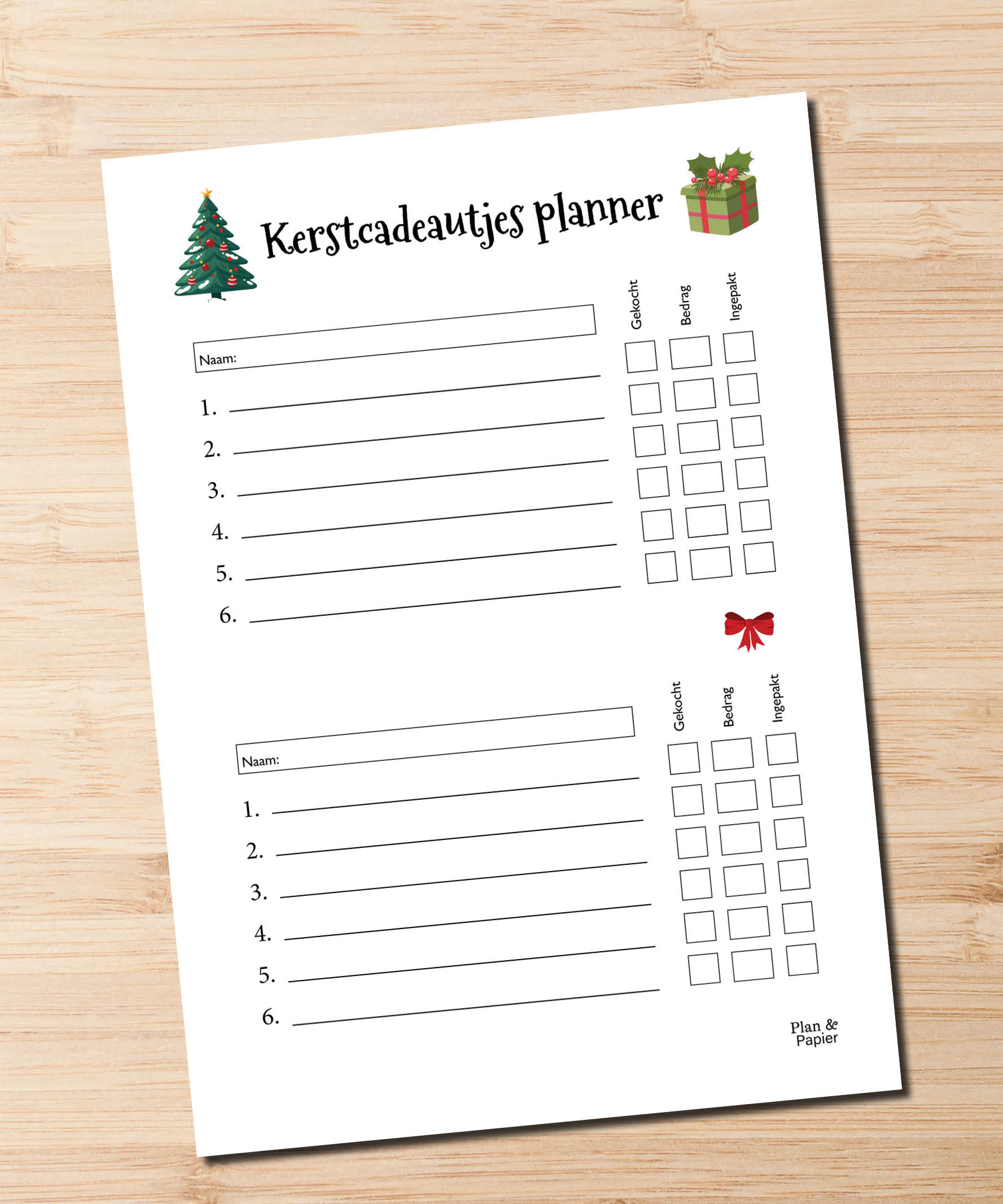 Wil je dit jaar zonder kerststress cadeautjes kopen, bijhouden wat je uitgeeft en precies weten wat al ingepakt is? Met de Kerstcadeautjes Planner van Plan & Papier houd je alles overzichtelijk op één plek.