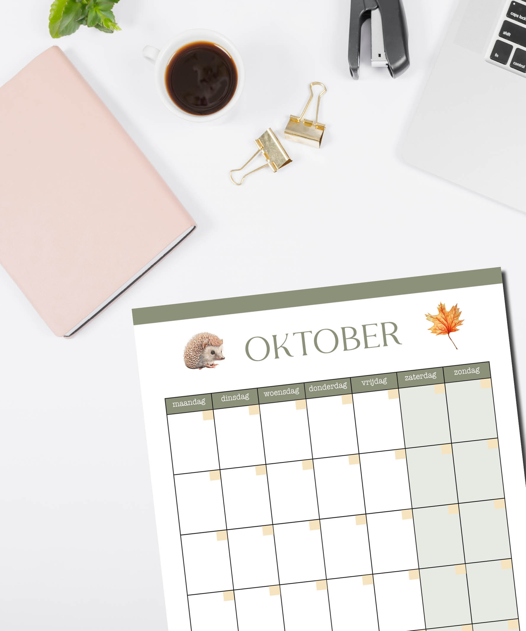 Breng structuur én sfeer in je maand met deze prachtige Oktober kalender printable. Deze kalender is ontworpen zonder data, zodat je hem ieder jaar opnieuw kunt gebruiken. Perfect voor je planner, bureau of aan de muur.