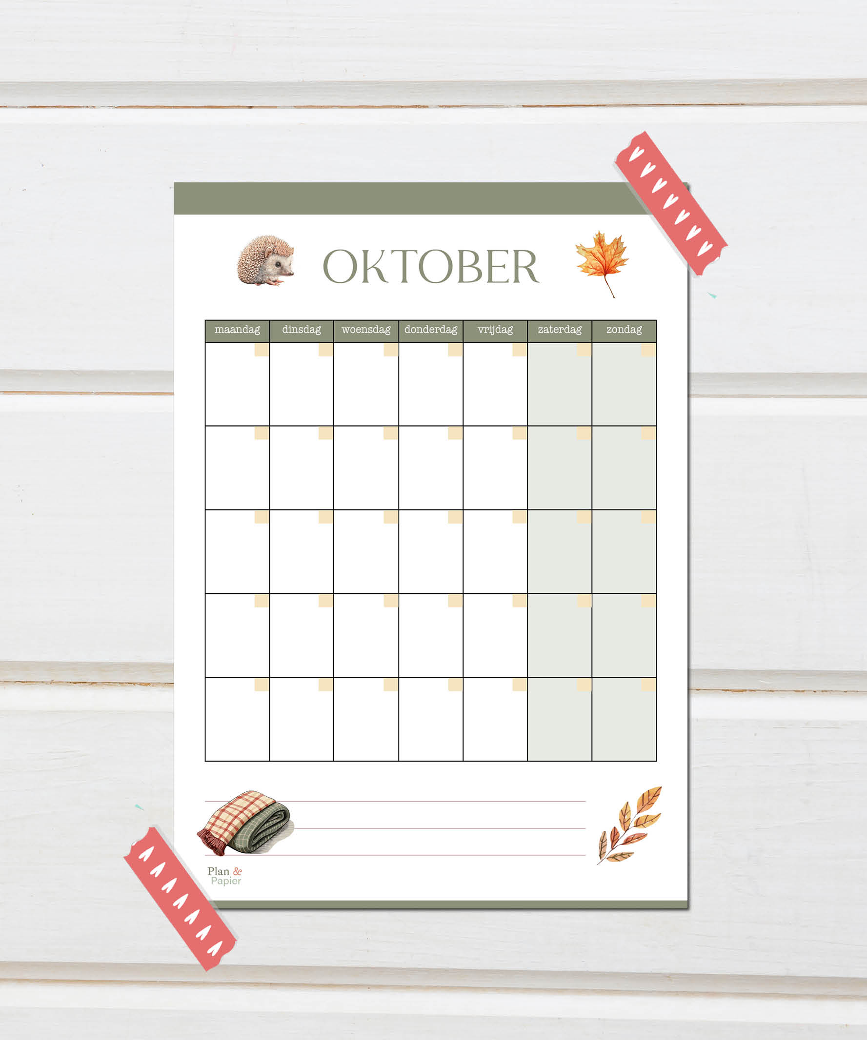 Oktober Kalender Printable – Herbruikbaar & Stijlvol met Herfstillustraties